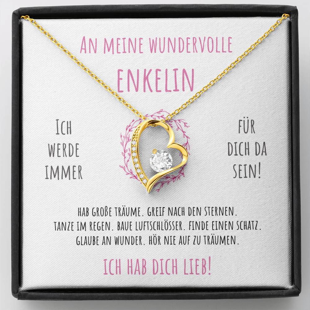 Suchst du nach einem besonderen Geschenk, das deine Enkelin zum Strahlen bringt und für immer in Erinnerung bleibt? Dann ist unser Schmuck Geschenk bestehend aus Halskette, Karte und Schmuckbox die ideale Wahl für dich.