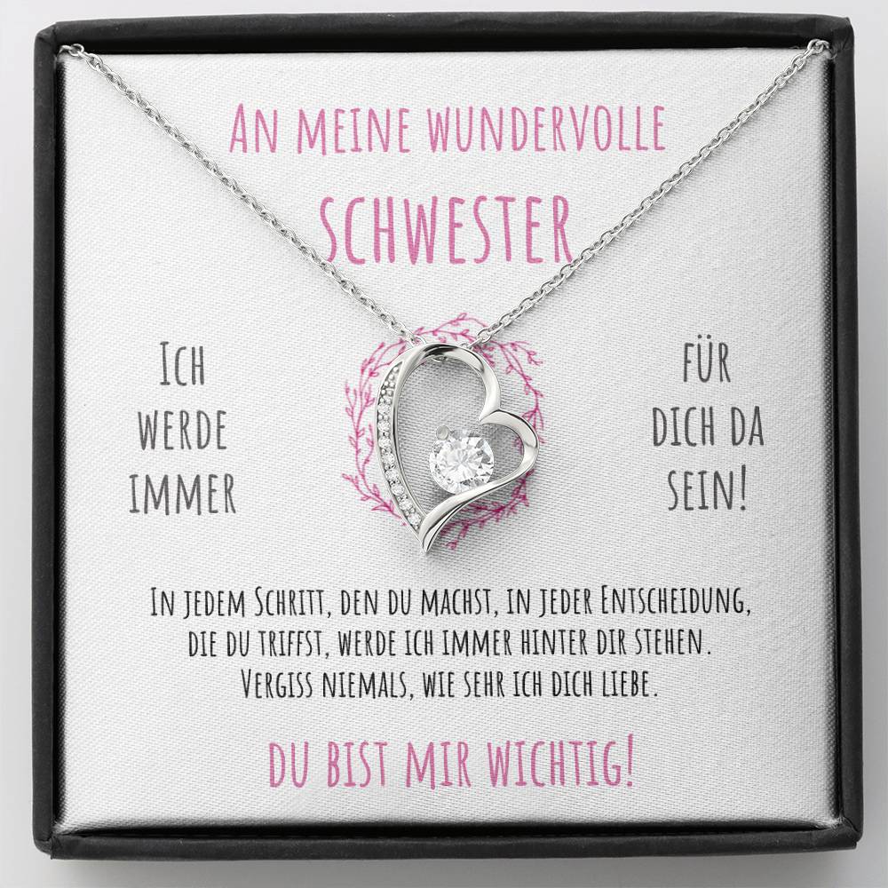 'An meine Schwester - Vergiss niemals' Funkelndes Herz Halskette