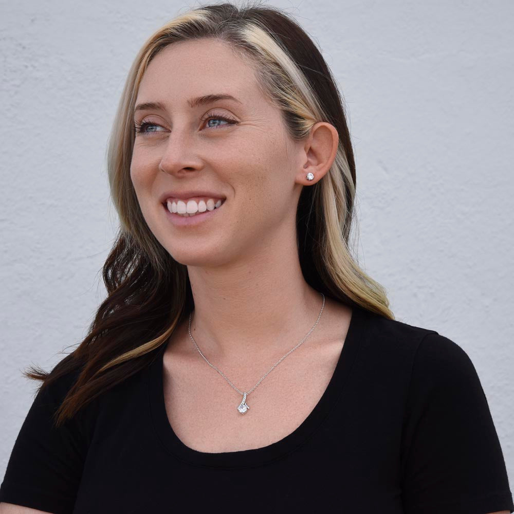 Elegantes Schmuckset bestehend aus Halskette, Ohrstecker, Karte und Schmuckbox.