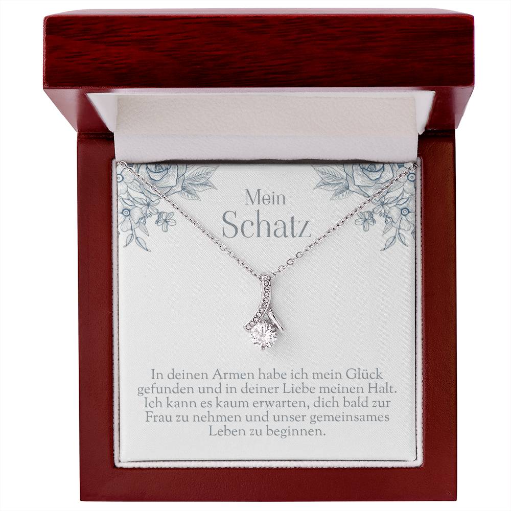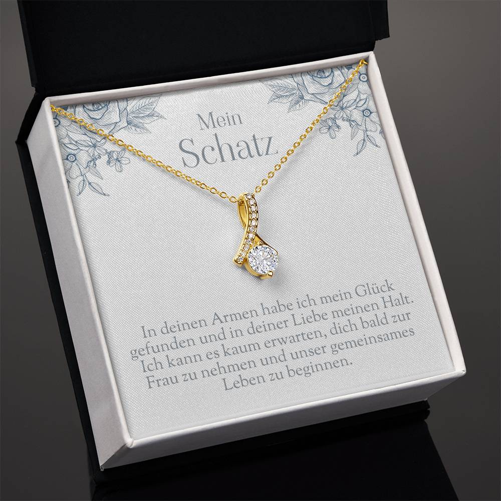 » Kette für Verlobte: Überrasche deine Verlobte mit einem besonderen Geschenk, das deine Liebe und Wertschätzung zum Ausdruck bringt. Es soll eine Erinnerung daran sein, wie wichtig sie für dich ist und die Vorfreude auf eure gemeinsame Zukunft steigern.» Besonderes Verlobungsgeschenk: Die Halskette und Karte erfreuen die Beschenkte augenblicklich beim Öffnen und sorgen für einen unvergesslichen Moment, der in Erinnerung bleibt.