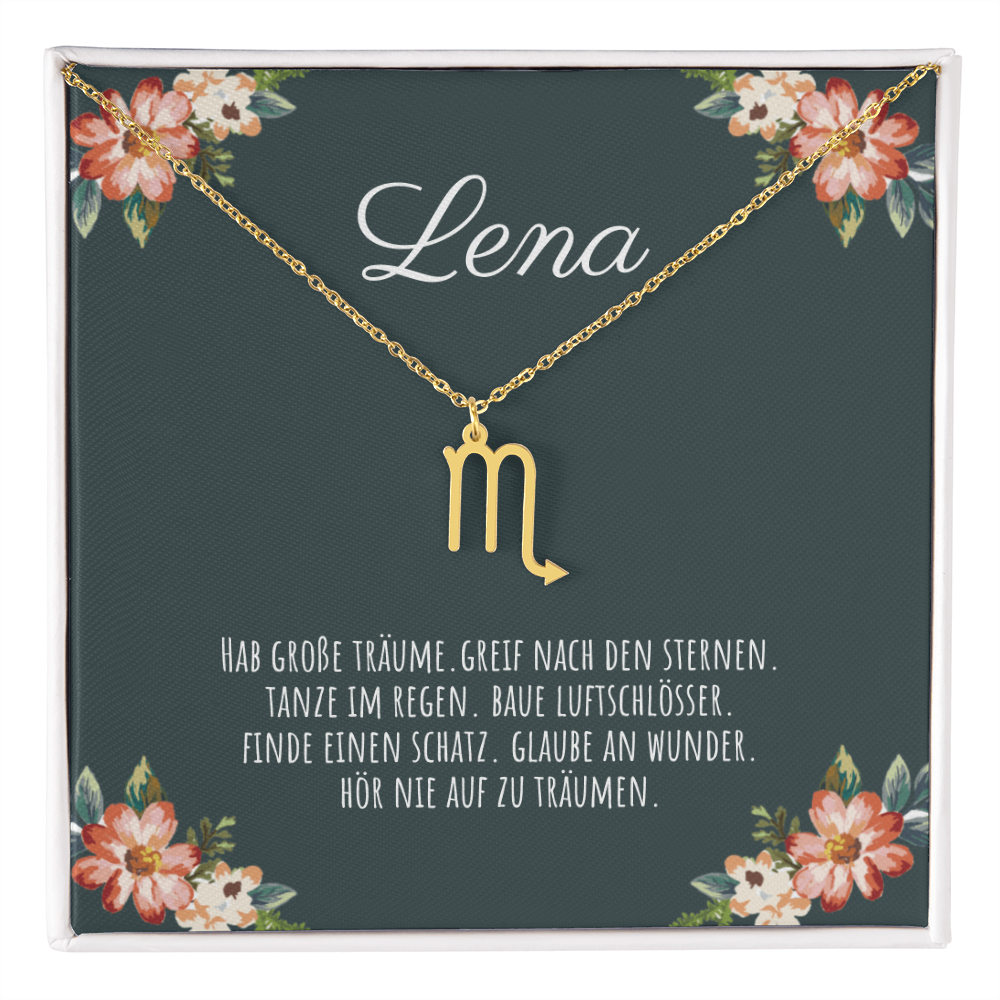 Sternzeichen Skorpion Halskette 'Hör nie auf zu träumen'